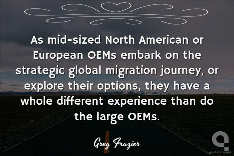 As mid-sized North American or European OEMs embark on the strategic global migration journey, or explore their options, they have a whole different experience than do the large OEMs. Greg Frazier