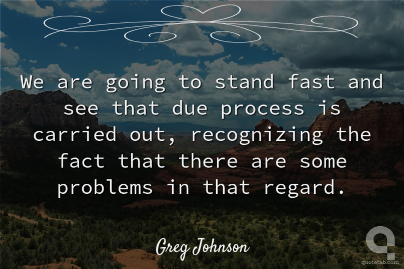 We are going to stand fast and see that due process is carried out, recognizing the fact that there are some problems in that regard. Greg Johnson