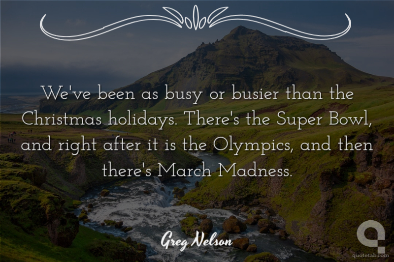 We've been as busy or busier than the Christmas holidays. There's the Super Bowl, and right after it is the Olympics, and then there's March Madness. Greg Nelson