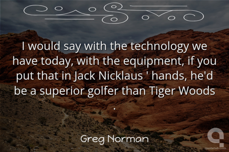 I would say with the technology we have today, with the equipment, if you put that in Jack Nicklaus ' hands, he'd be a superior golfer than Tiger Woods . Greg Norman