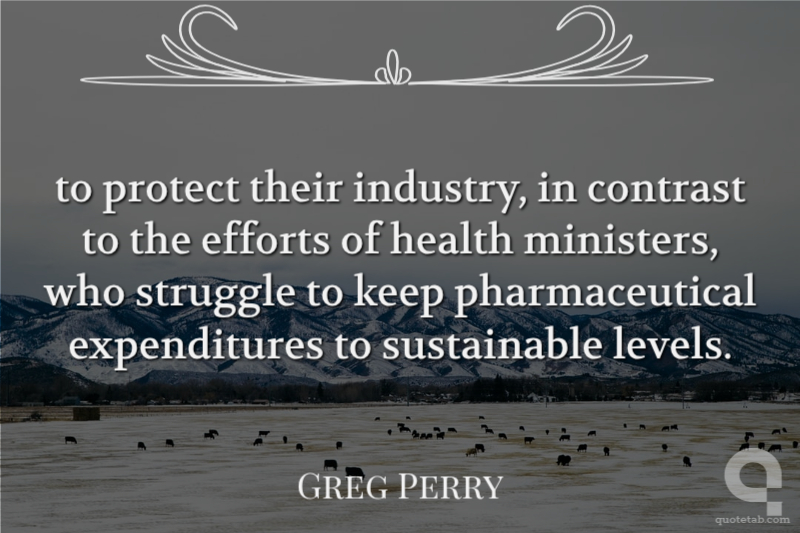 to protect their industry, in contrast to the efforts of health ministers, who struggle to keep pharmaceutical expenditures to sustainable levels. Greg Perry
