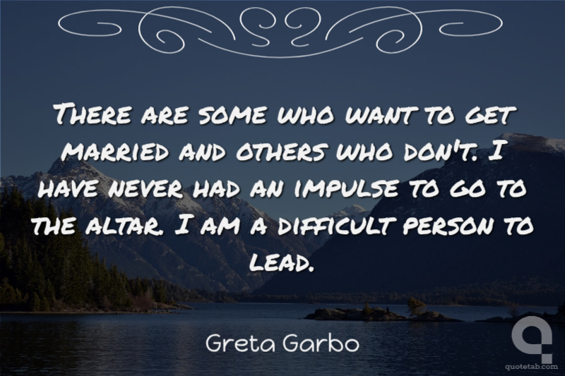 There are some who want to get married and others who don't. I have never had an impulse to go to the altar. I am a difficult person to lead. Greta Garbo