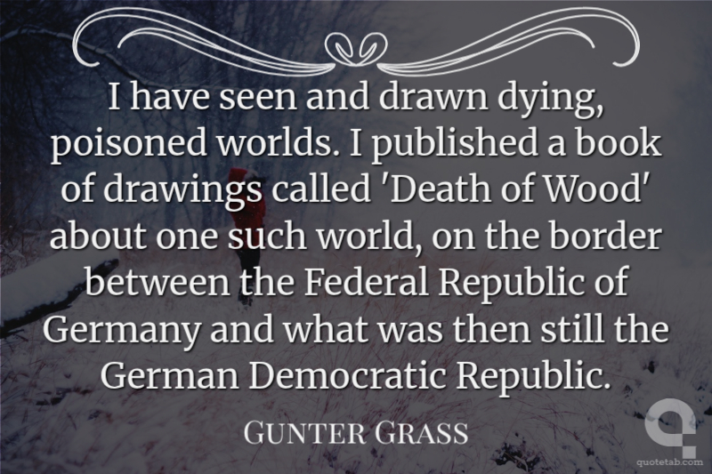 I have seen and drawn dying, poisoned worlds. I published a book of drawings called 'Death of Wood' about one such world, on the border between the Federal Republic of Germany and what was then still the German Democratic Republic. Gunter Grass