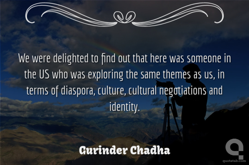 We were delighted to find out that here was someone in the US who was exploring the same themes as us, in terms of diaspora, culture, cultural negotiations and identity. Gurinder Chadha