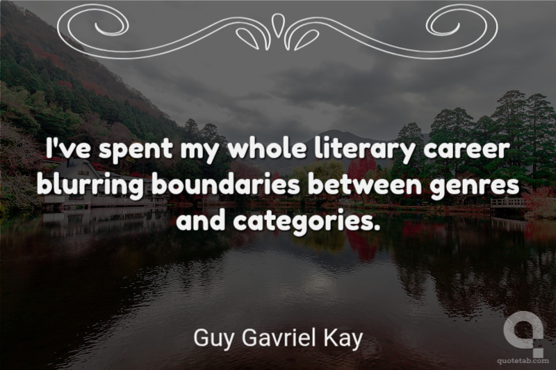 I've spent my whole literary career blurring boundaries between genres and categories. Guy Gavriel Kay