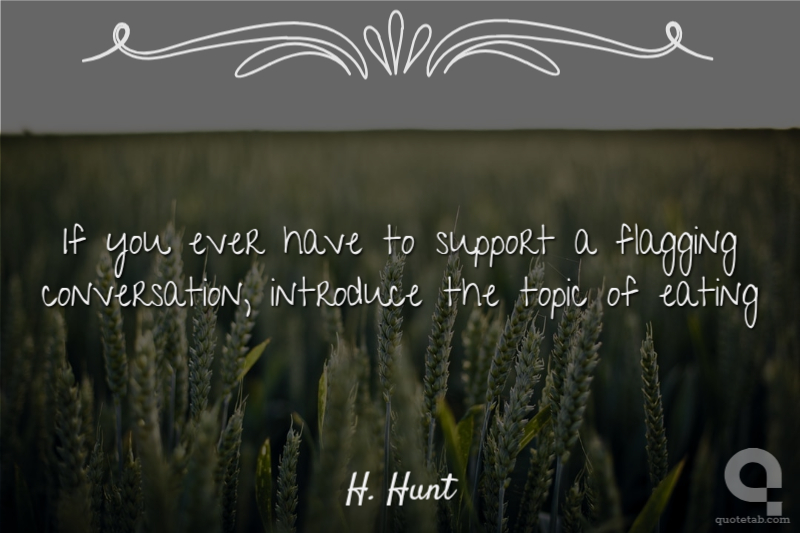 If you ever have to support a flagging conversation, introduce the topic of eating H. Hunt