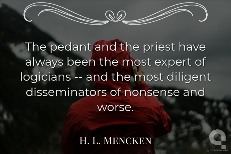The pedant and the priest have always been the most expert of logicians -- and the most diligent disseminators of nonsense and worse. H. L. Mencken