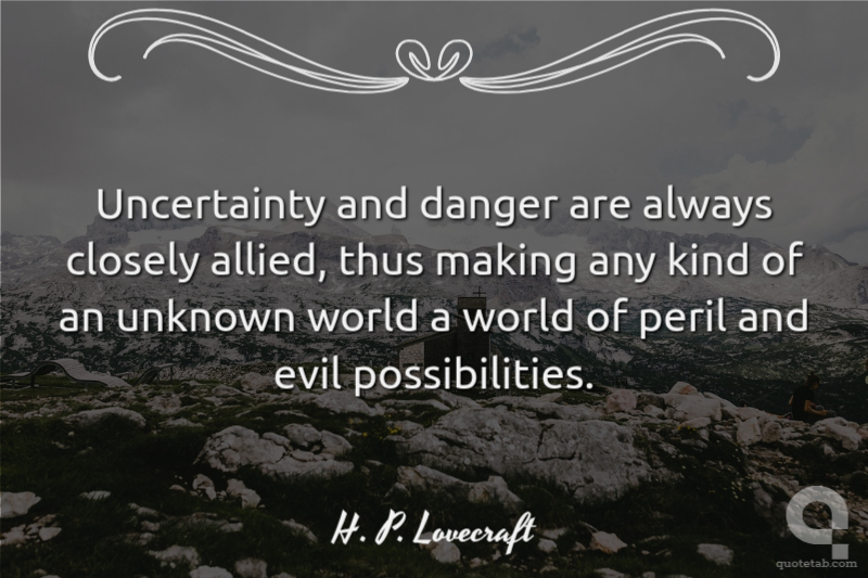 Uncertainty and danger are always closely allied, thus making any kind of an unknown world a world of peril and evil possibilities. H. P. Lovecraft