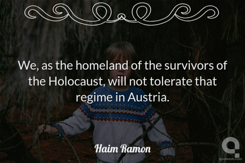 We, as the homeland of the survivors of the Holocaust, will not tolerate that regime in Austria. Haim Ramon