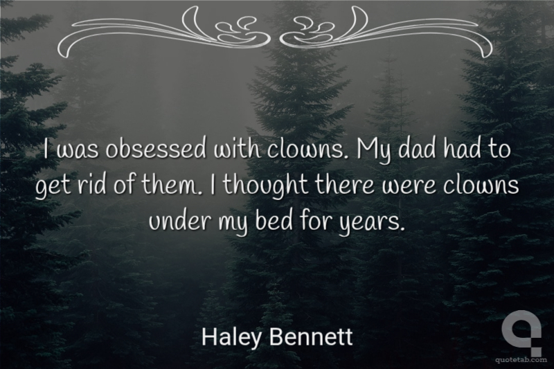 I was obsessed with clowns. My dad had to get rid of them. I thought there were clowns under my bed for years. Haley Bennett