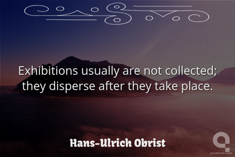 Exhibitions usually are not collected; they disperse after they take place. Hans-Ulrich Obrist