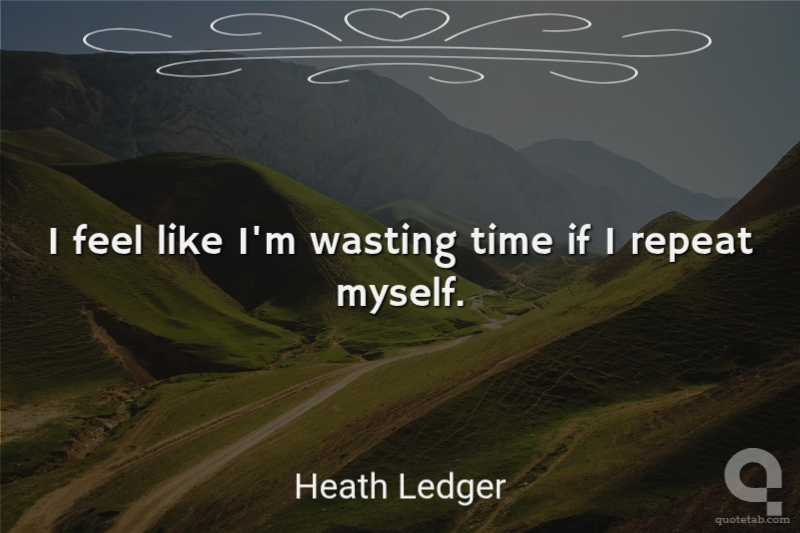 I feel like I'm wasting time if I repeat myself. Heath Ledger