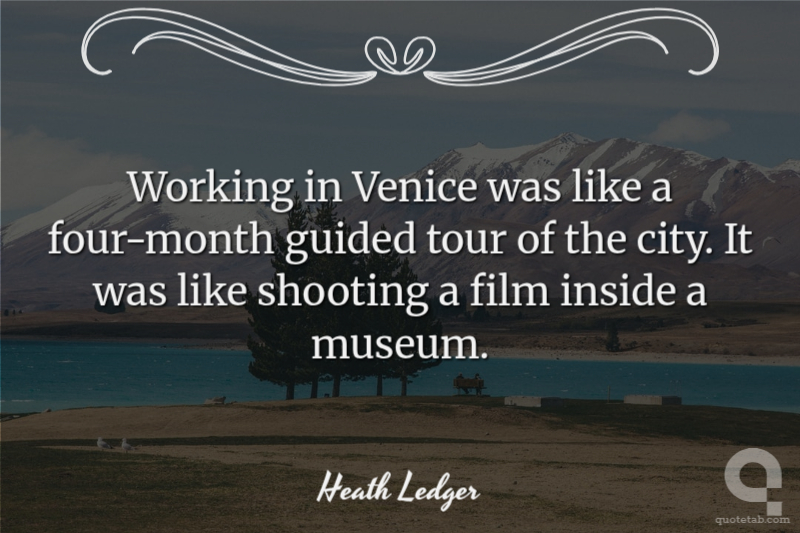 Working in Venice was like a four-month guided tour of the city. It was like shooting a film inside a museum. Heath Ledger