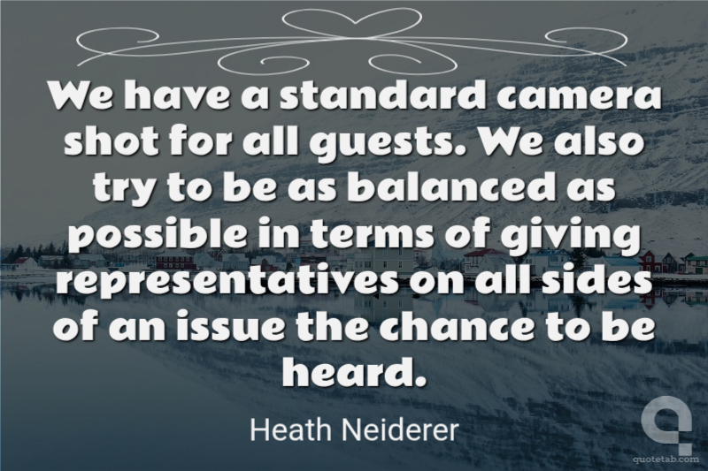 We have a standard camera shot for all guests. We also try to be as balanced as possible in terms of giving representatives on all sides of an issue the chance to be heard. Heath Neiderer