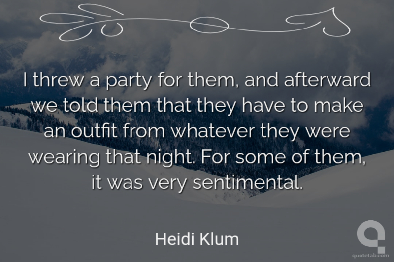 I threw a party for them, and afterward we told them that they have to make an outfit from whatever they were wearing that night. For some of them, it was very sentimental. Heidi Klum