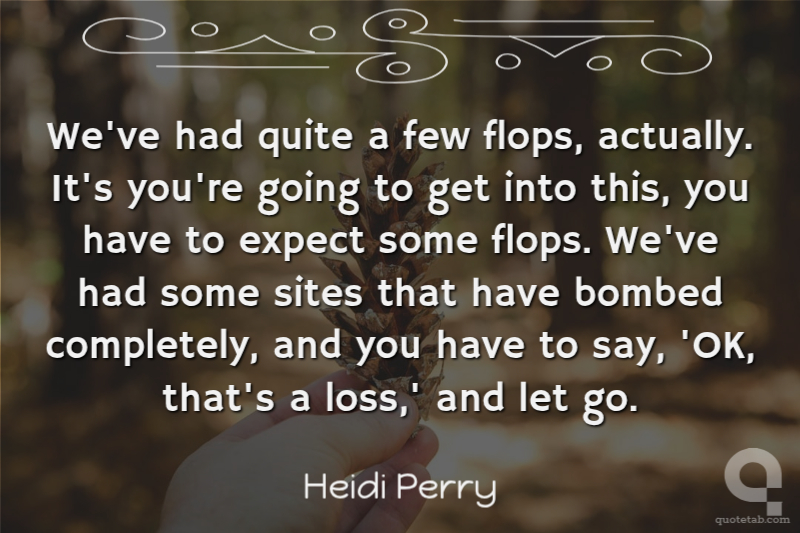 We've had quite a few flops, actually. It's you're going to get into this, you have to expect some flops. We've had some sites that have bombed completely, and you have to say, 'OK, that's a loss,' and let go. Heidi Perry