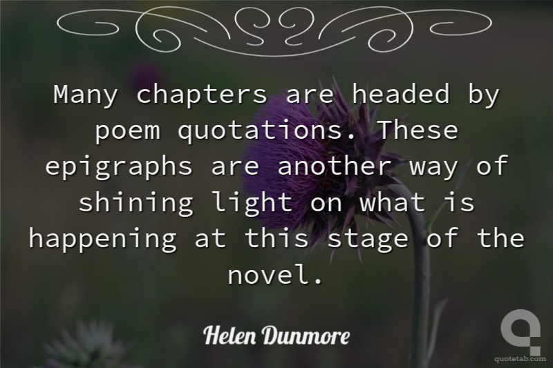 Many chapters are headed by poem quotations. These epigraphs are another way of shining light on what is happening at this stage of the novel. Helen Dunmore