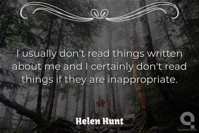 I usually don't read things written about me and I certainly don't read things if they are inappropriate. Helen Hunt