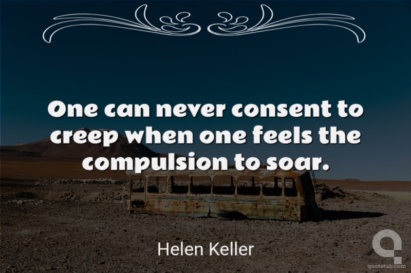 One can never consent to creep when one feels the compulsion to soar. Helen Keller