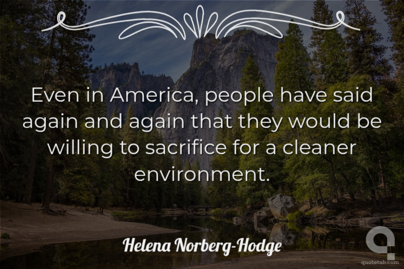 Even in America, people have said again and again that they would be willing to sacrifice for a cleaner environment. Helena Norberg-Hodge