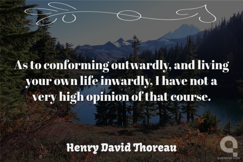 As to conforming outwardly, and living your own life inwardly, I have not a very high opinion of that course. Henry David Thoreau