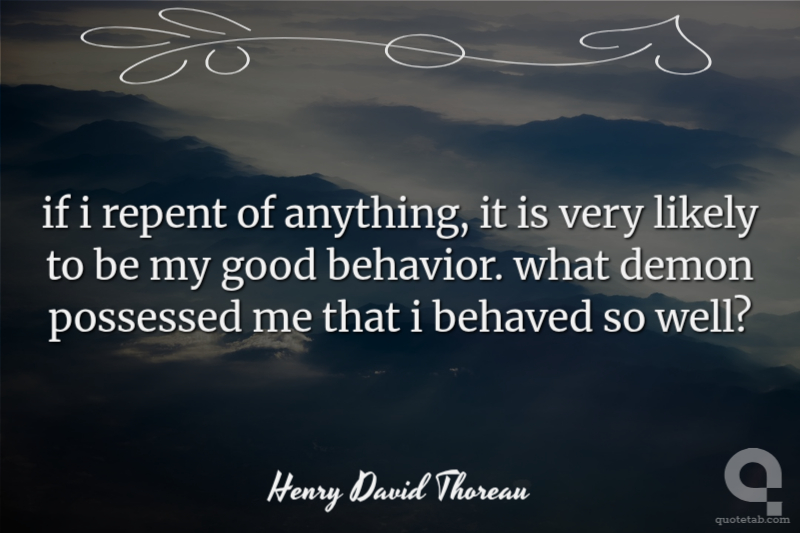 if i repent of anything, it is very likely to be my good behavior. what demon possessed me that i behaved so well? Henry David Thoreau
