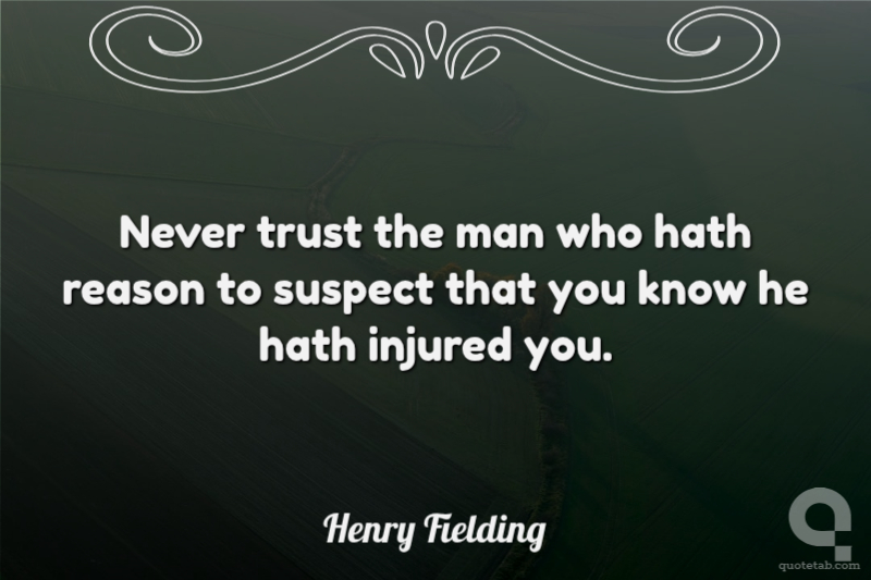 Never trust the man who hath reason to suspect that you know he hath injured you. Henry Fielding
