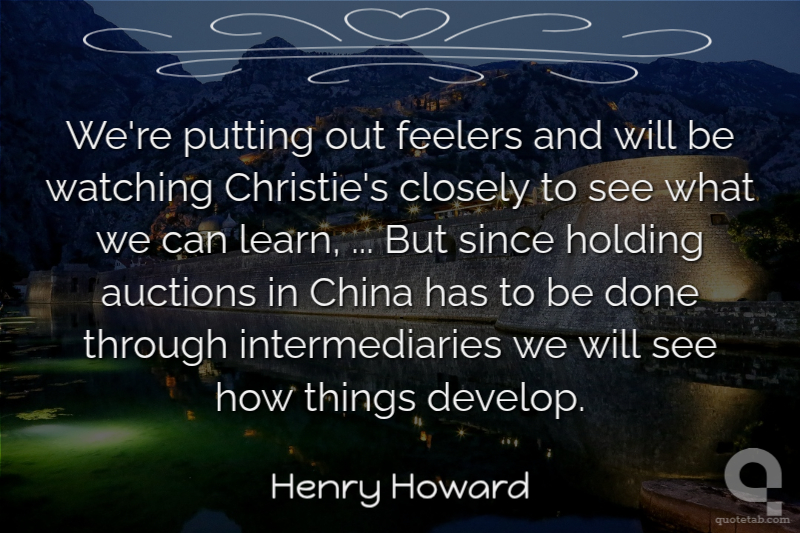 We're putting out feelers and will be watching Christie's closely to see what we can learn, ... But since holding auctions in China has to be done through intermediaries we will see how things develop. Henry Howard