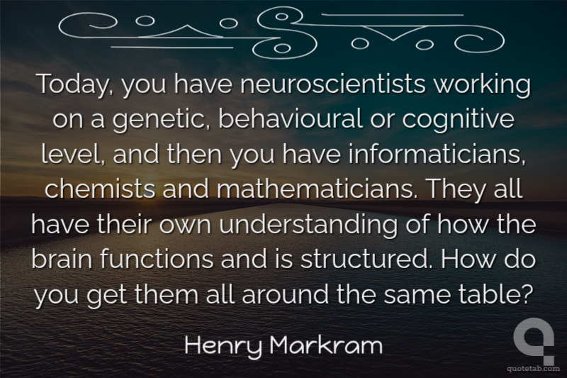 Today, you have neuroscientists working on a genetic, behavioural or cognitive level, and then you have informaticians, chemists and mathematicians. They all have their own understanding of how the brain functions and is structured. How do you get them all around the same table? Henry Markram