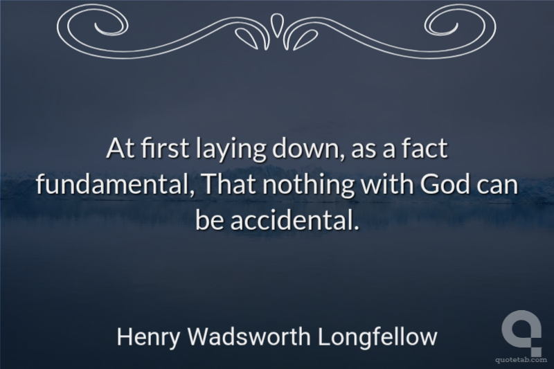 At first laying down, as a fact fundamental, That nothing with God can be accidental. Henry Wadsworth Longfellow