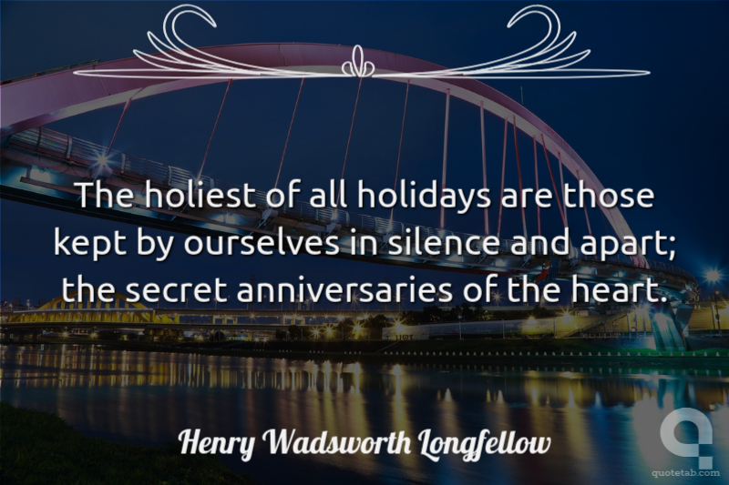 The holiest of all holidays are those kept by ourselves in silence and apart; the secret anniversaries of the heart. Henry Wadsworth Longfellow