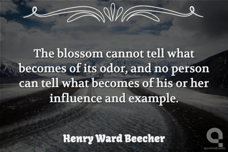 The blossom cannot tell what becomes of its odor, and no person can tell what becomes of his or her influence and example. Henry Ward Beecher