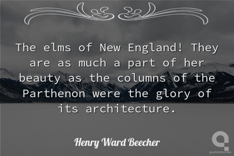 The elms of New England! They are as much a part of her beauty as the columns of the Parthenon were the glory of its architecture. Henry Ward Beecher