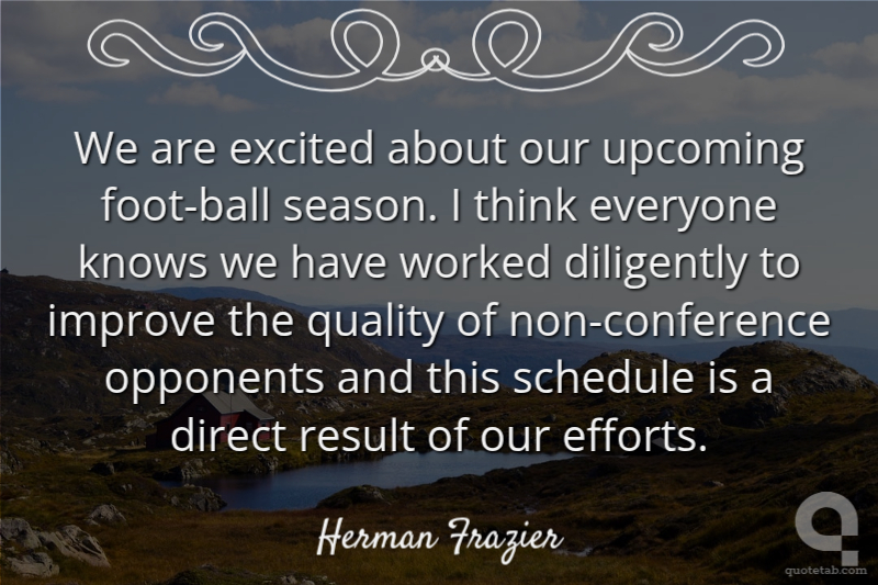 We are excited about our upcoming foot-ball season. I think everyone knows we have worked diligently to improve the quality of non-conference opponents and this schedule is a direct result of our efforts. Herman Frazier