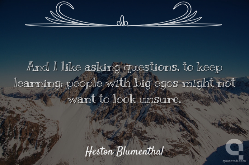 And I like asking questions, to keep learning; people with big egos might not want to look unsure. Heston Blumenthal