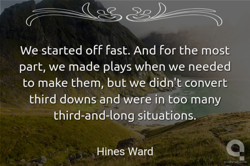 We started off fast. And for the most part, we made plays when we needed to make them, but we didn't convert third downs and were in too many third-and-long situations. Hines Ward