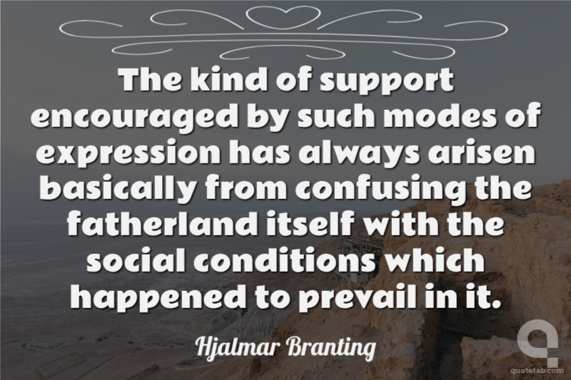 The kind of support encouraged by such modes of expression has always arisen basically from confusing the fatherland itself with the social conditions which happened to prevail in it. Hjalmar Branting