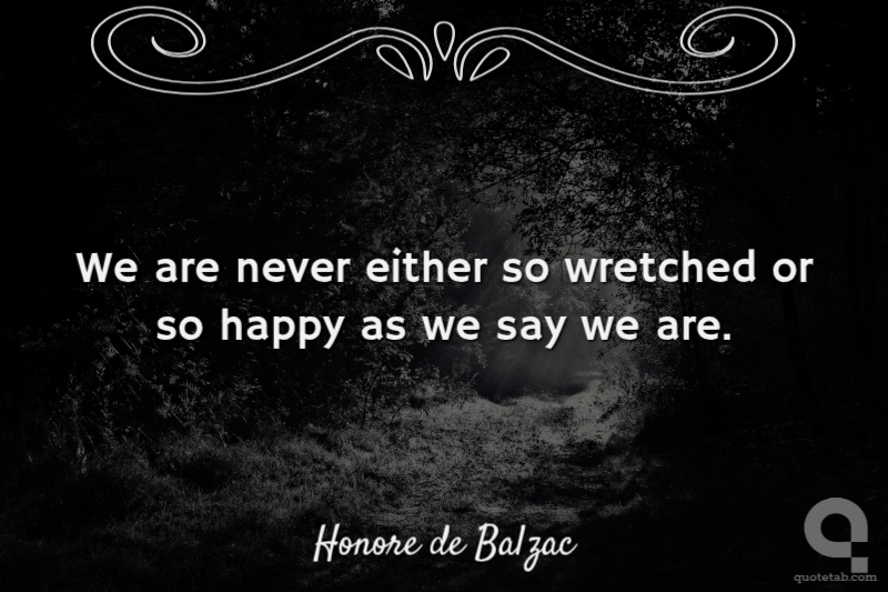 Honore de Balzac We are never either so wretched or so happy as we say we are.