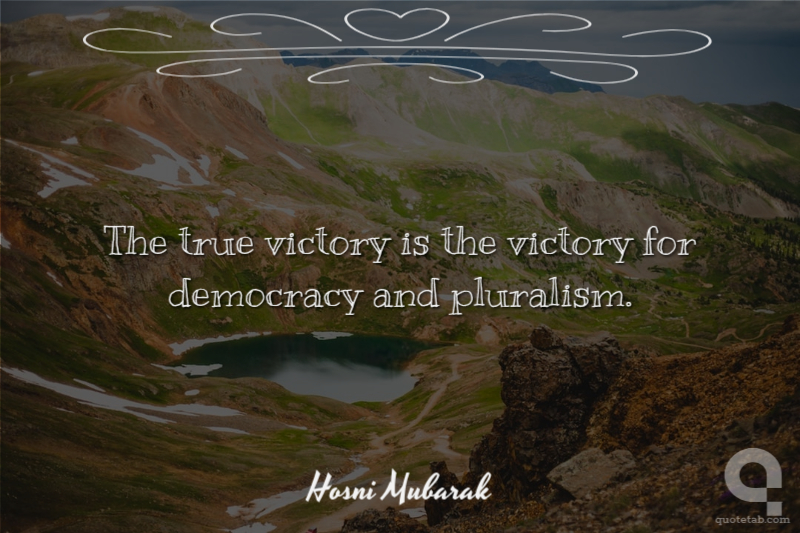 The true victory is the victory for democracy and pluralism. Hosni Mubarak