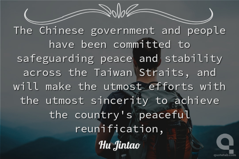 We will never allow anybody to separate Taiwan from China. Hu Jintao