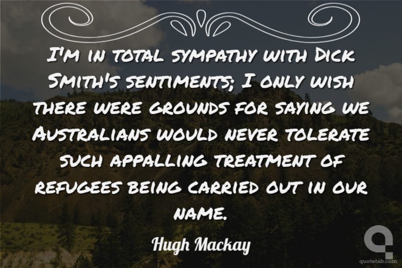 I'm in total sympathy with Dick Smith's sentiments; I only wish there were grounds for saying we Australians would never tolerate such appalling treatment of refugees being carried out in our name. Hugh Mackay