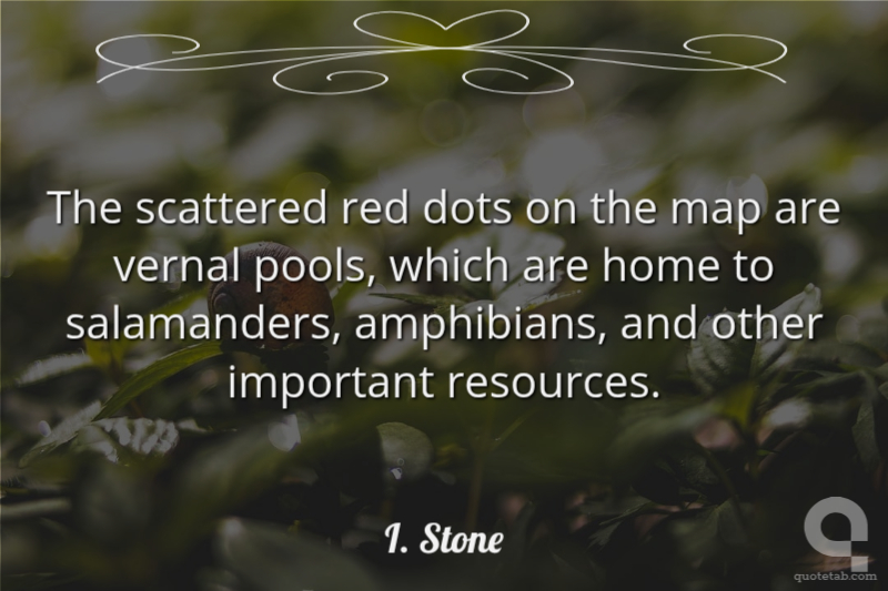The scattered red dots on the map are vernal pools, which are home to salamanders, amphibians, and other important resources. I. Stone