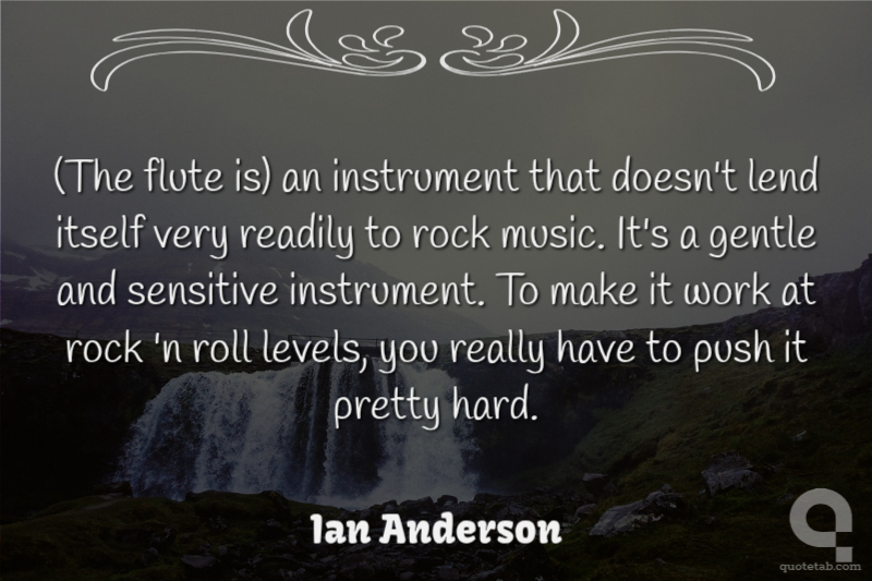 (The flute is) an instrument that doesn't lend itself very readily to rock music. It's a gentle and sensitive instrument. To make it work at rock 'n roll levels, you really have to push it pretty hard. Ian Anderson