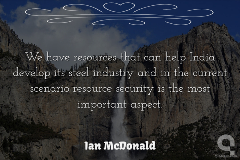 We have resources that can help India develop its steel industry and in the current scenario resource security is the most important aspect. Ian McDonald