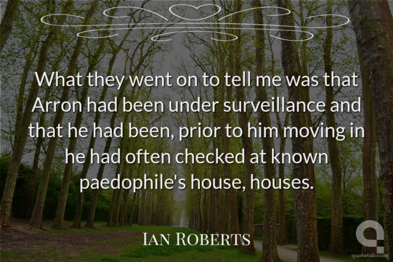 What they went on to tell me was that Arron had been under surveillance and that he had been, prior to him moving in he had often checked at known paedophile's house, houses. Ian Roberts
