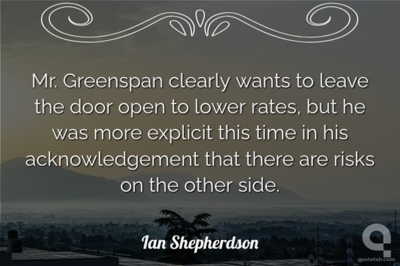 Greenspan is trying to level out this market, trying to put some two-sided risk in this market, to take some of that speculative froth out. David Jones