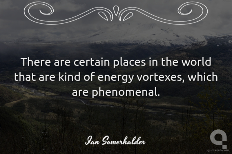 There are certain places in the world that are kind of energy vortexes, which are phenomenal. Ian Somerhalder