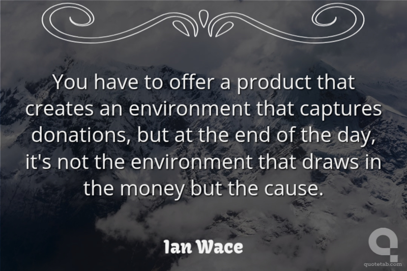 You have to offer a product that creates an environment that captures donations, but at the end of the day, it's not the environment that draws in the money but the cause. Ian Wace