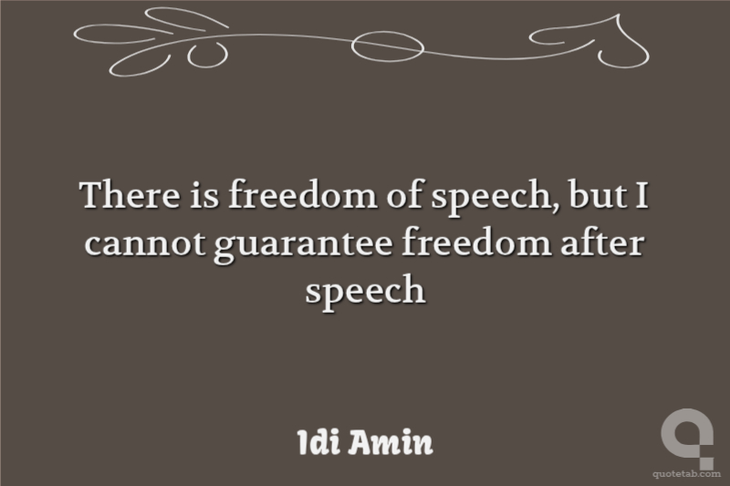 There is freedom of speech, but I cannot guarantee freedom after speech Idi Amin