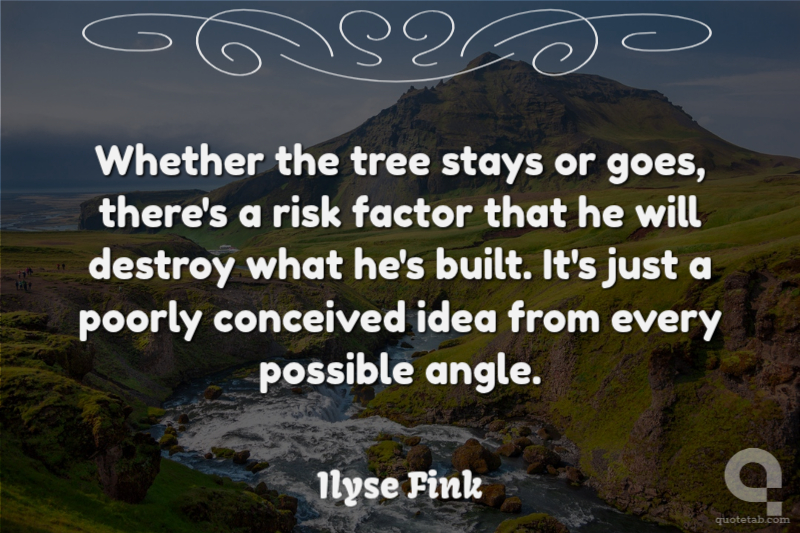 Whether the tree stays or goes, there's a risk factor that he will destroy what he's built. It's just a poorly conceived idea from every possible angle. Ilyse Fink